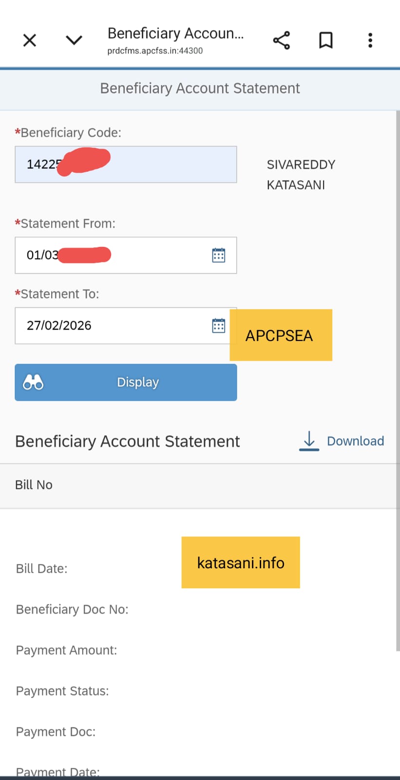 Enter your beneficiary Code ( CFMS id) Select from ... To ..date (Note CFMS implement in 2028)
